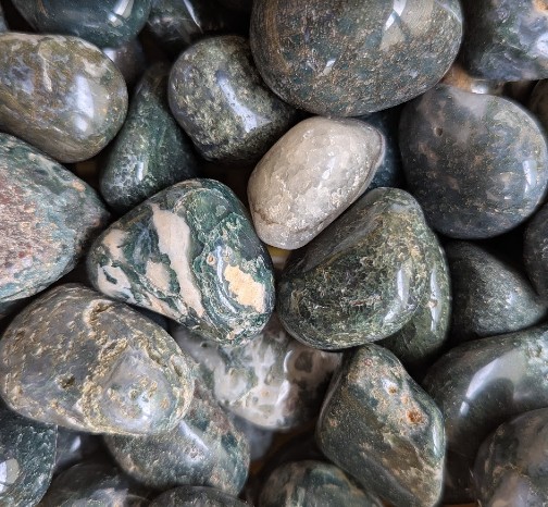 Härte: 6,5-7 | Farbgebung: hell bis dunkel grün, weißlich, schwärzlich | Esoterik: Entscheidungskrat, innere Stärke und Sicherheit