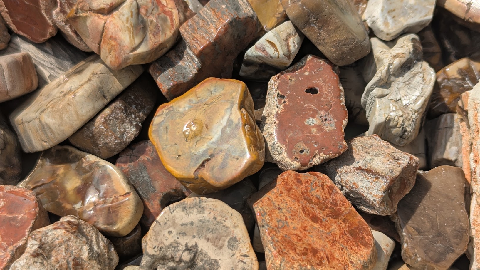 Härte: 7 | Farbgebung: braun, rot, weiß, gelb, grau | Esoterik: Bodenständigkeit